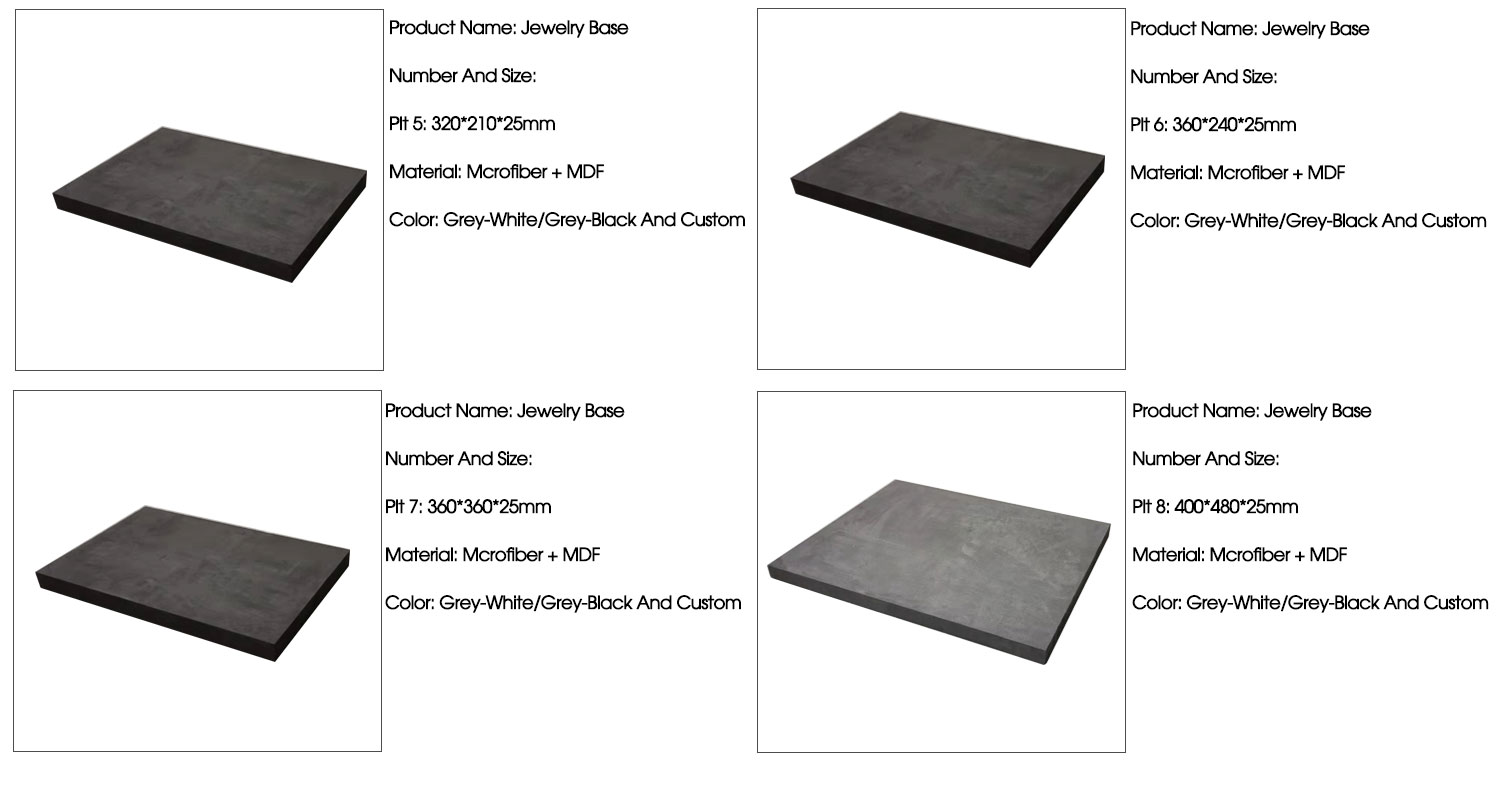 We have designed hundreds of elements so that customers can match the jewelry store display they want according to their own ideas. We will also provide customers with professional and effective suggestions so that customers can better choose the products they want. This product involves the matching of high, medium and low-end elements such as ring holders, earring holders, pendant holders, bracelet holders, bracelet holders, etc., as well as the selection and matching of back plates. We carefully selected the high-end microfiber materials on the market to make this product. The characteristics of the microfiber material can ensure that this jewelry display product will last for many years without breaking.