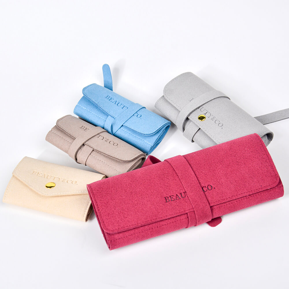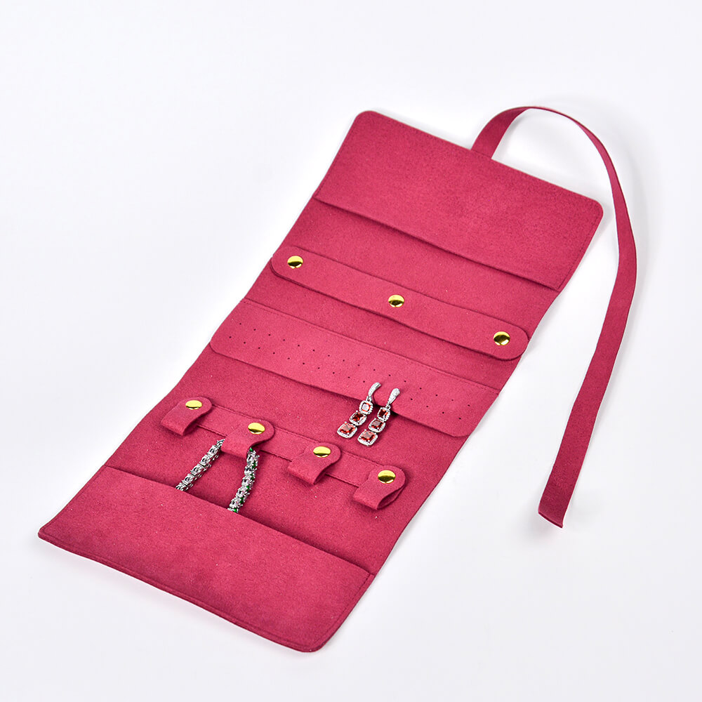 This jewelry bag is made of microfiber material. We use skilled craftsmen for sewing to ensure the beauty and quality of our products. When