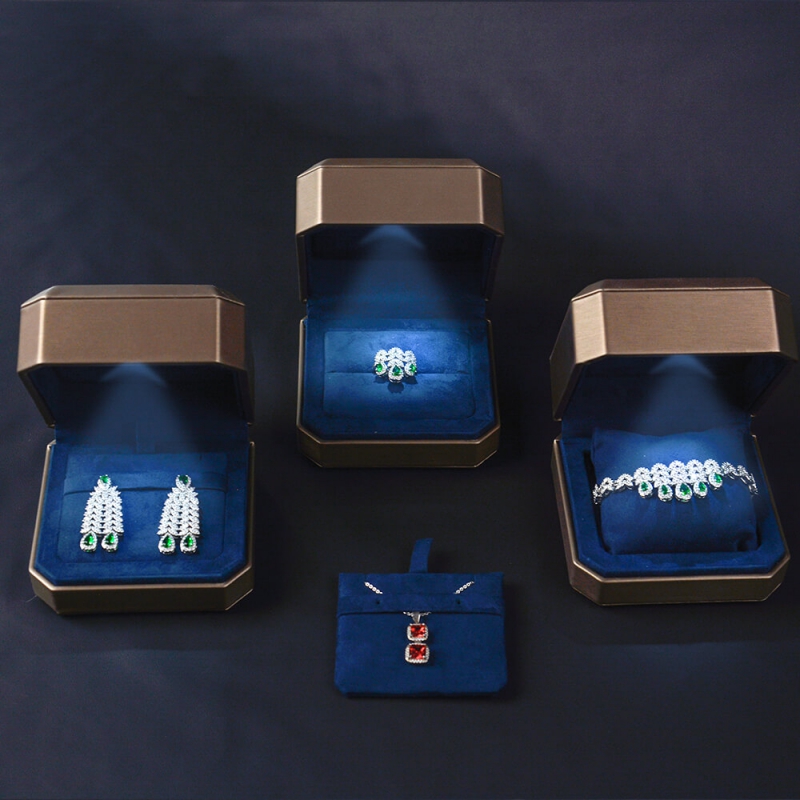 This set of jewelry boxes includes single ring box, double ring box, earring box, pendant box, bangle box, bracelet box, large necklace box,