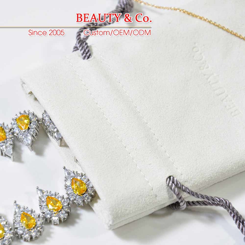 This jewelry bag is made of microfiber material. We use skilled craftsmen for sewing to ensure the beauty and quality of our products. When