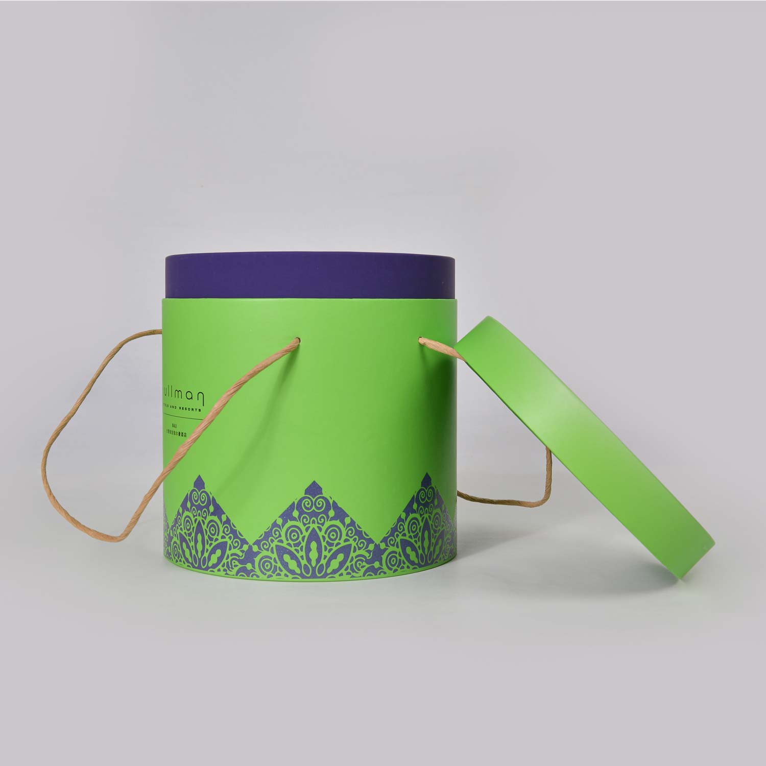 This packaging box adopts a cylindrical design, taking into account both beauty and practicality. The cylindrical shape ensures that the stress