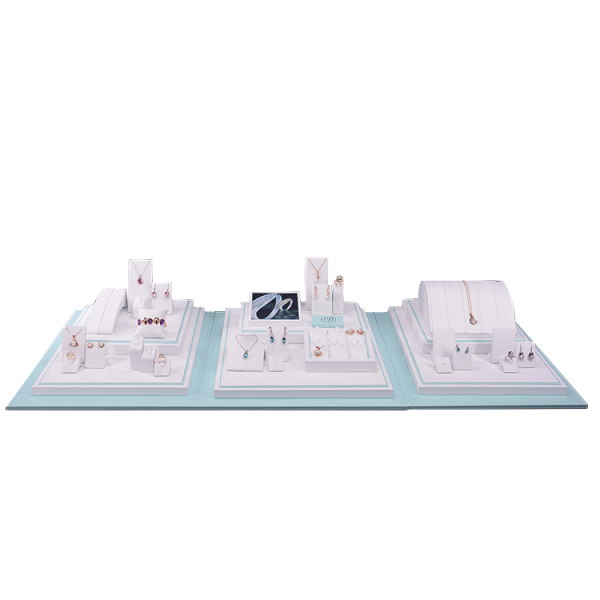 We have designed hundreds of elements so that customers can match the jewelry store display they want according to their own ideas. We will also provide customers with professional and effective suggestions so that customers can better choose the products they want. This product involves the matching of high, medium and low-end elements such as ring holders, earring holders, pendant holders, bracelet holders, bracelet holders, etc., as well as the selection and matching of back plates. We carefully selected the high-end microfiber materials on the market to make this product. The characteristics of the microfiber material can ensure that this jewelry display product will last for many years without breaking.