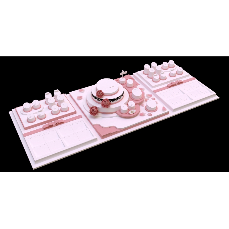 We have designed hundreds of elements so that customers can match the jewelry store display they want according to their own ideas. We will also provide customers with professional and effective suggestions so that customers can better choose the products they want. This product involves the matching of high, medium and low-end elements such as ring holders, earring holders, pendant holders, bracelet holders, bracelet holders, etc., as well as the selection and matching of back plates. We carefully selected the high-end microfiber materials on the market to make this product. The characteristics of the microfiber material can ensure that this jewelry display product will last for many years without breaking.