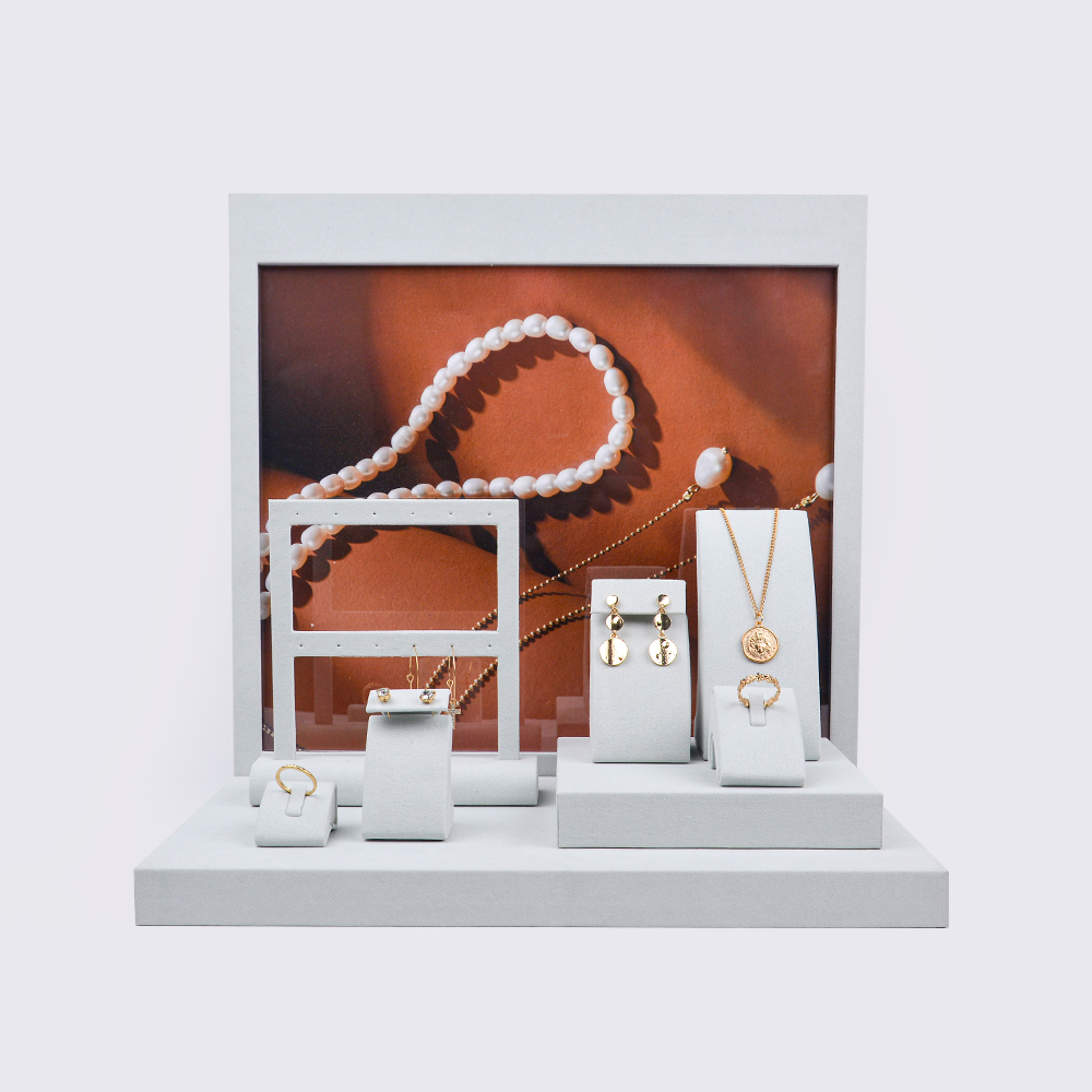 We have designed hundreds of elements so that customers can match the jewelry store display they want according to their own ideas. We will also provide customers with professional and effective suggestions so that customers can better choose the products they want. This product involves the matching of high, medium and low-end elements such as ring holders, earring holders, pendant holders, bracelet holders, bracelet holders, etc., as well as the selection and matching of back plates. We carefully selected the high-end microfiber materials on the market to make this product. The characteristics of the microfiber material can ensure that this jewelry display product will last for many years without breaking.