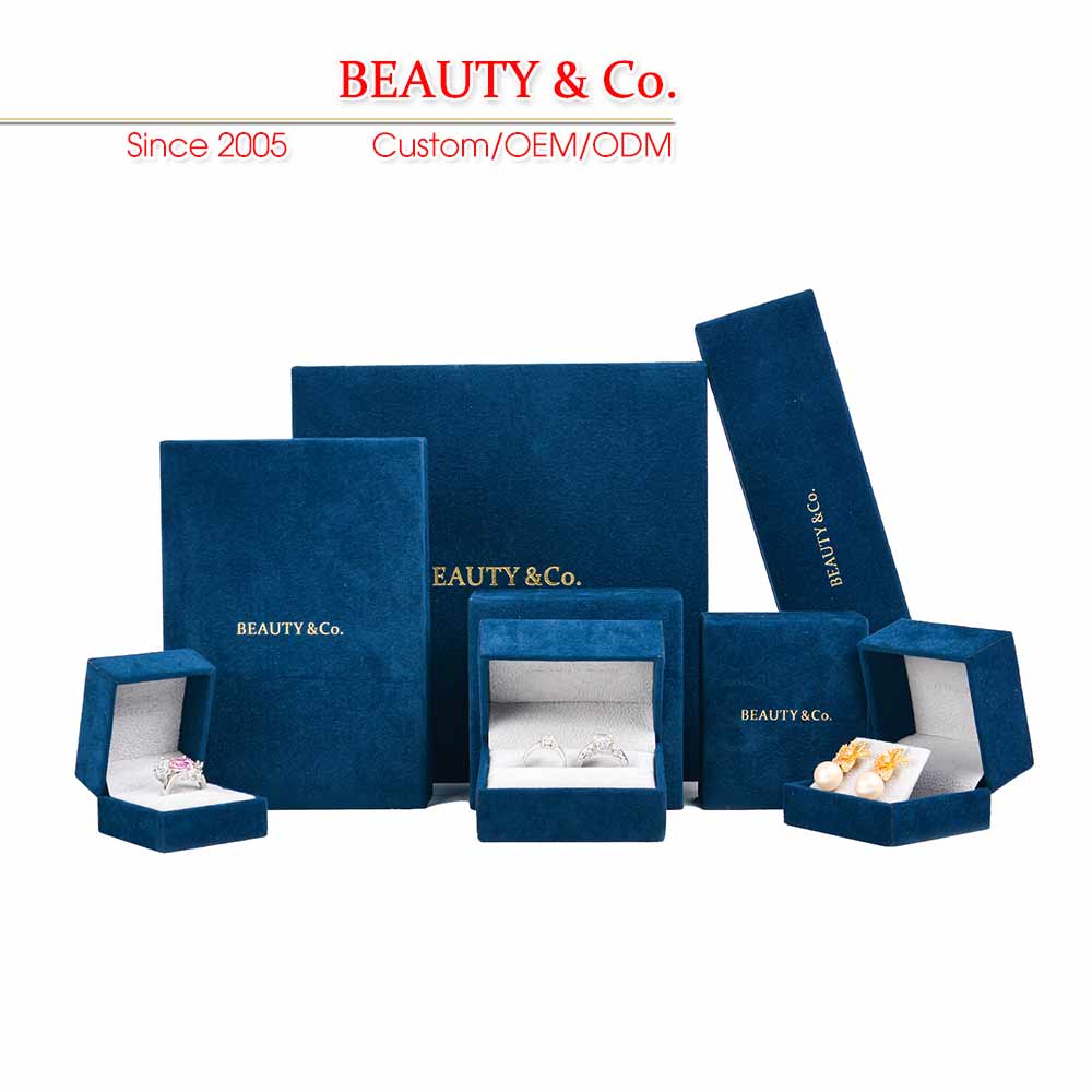 Luxury Blue Velvet Gift Set Plastic Box Jewelry Necklace Ring Packaging Small Jewelry Box