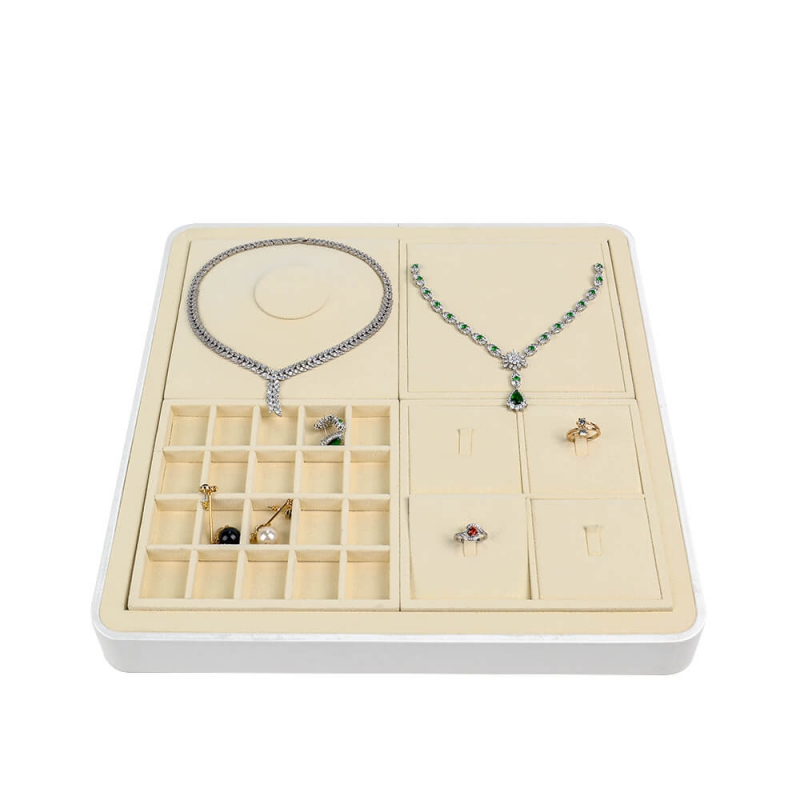 A: Yes,we have almost all of our jewelry displays,jewelry box and pouches in stock, also we can make customized Logo,size,material,color as your requirement.